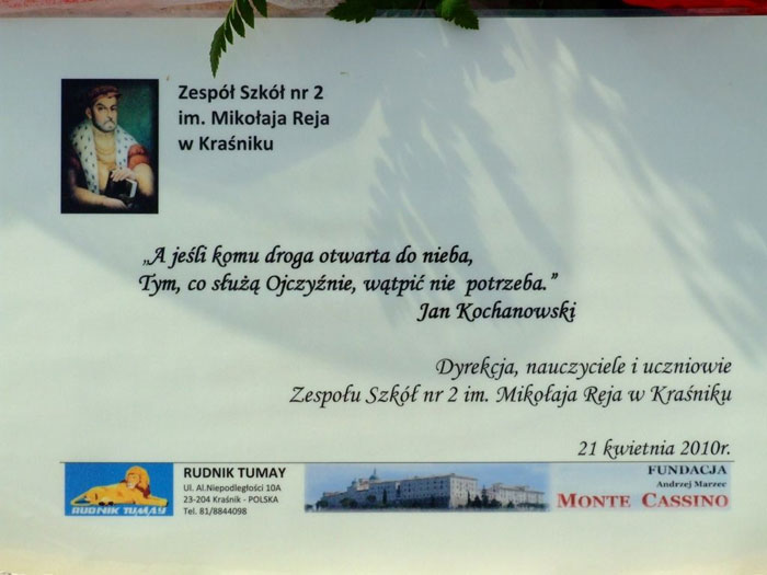 Z inicjatywy Fundacji Andrzej Marzec „Monte Cassino” , oraz przy wsparciu Burmistrza Miasta Kraśnik i Starostwa Powiatowego w Kraśniku, została zorganizowana wycieczka do Włoch dla uczniów Zespołu Szkół nr. 2 im.