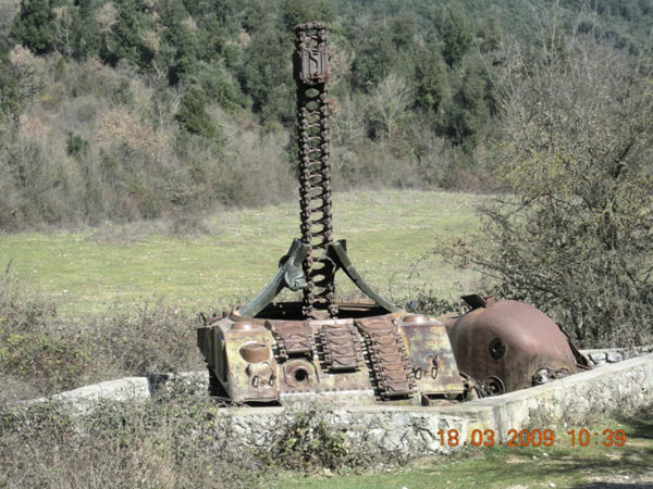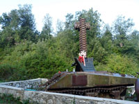 amunicji w czołgu, oderwanie i odrzucenie wieżyczki. Obecny układ pomnika