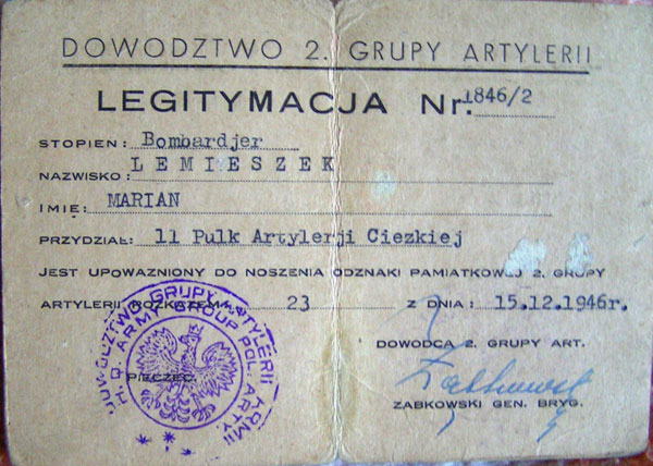 Został przydzielony do 2 Grupy Artylerii II Korpusu Polskiego. Jego dowódcą był płk (gen. bryg.) Ludwik Ząbkowski. I właśnie jako artylerzysta ze stopniem Bombardiera wziął udział Marian Lemieszek w walce o Monte Cassino.