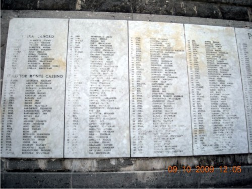 nazwisk żołnierzy 3 DSK poległych w kampanii włoskiej. Nad nimi na obelisku