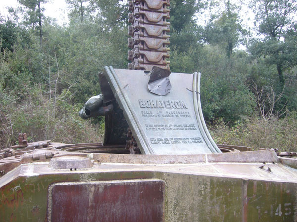 Pomnik powstał u wylotu Gardzieli w kierunku Albanetty, gdzie 12 maja 1944 r. czołg Sherman pod dowództwem p.por. Ludomira Białeckiego, wyleciał na zwielokrotnionej minie. Potężna siła wybuchu spowodowała detonację amunicji w czołgu, oderwanie i odrzucenie wieżyczki. Obecny układ pomnika jest taki sam jaki pozostał po bitwie. Czołg został tylko podmurowany i otoczony murkiem.