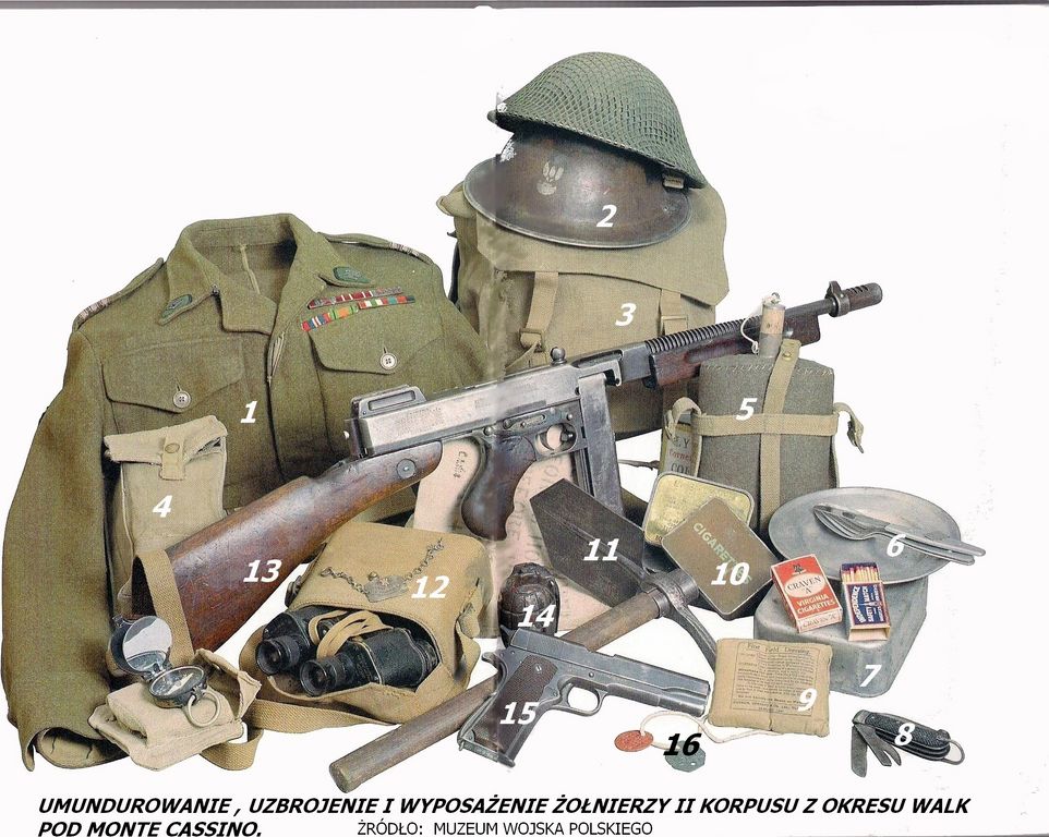 Umundurowanie, uzbrojenie i wyposażenie żołnierzy II Korpusu z okresu walk pod Monte Cassino